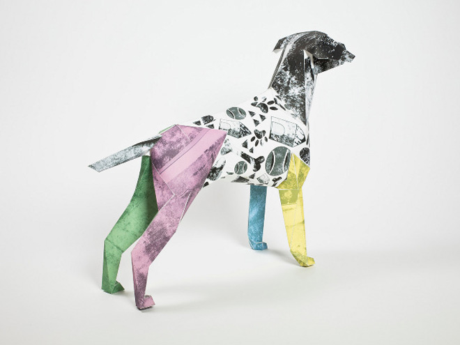 Gerald est un chien en papier né entre collaboration avec le graphiste Liam Hopkins et le designer Richard Sweeney.